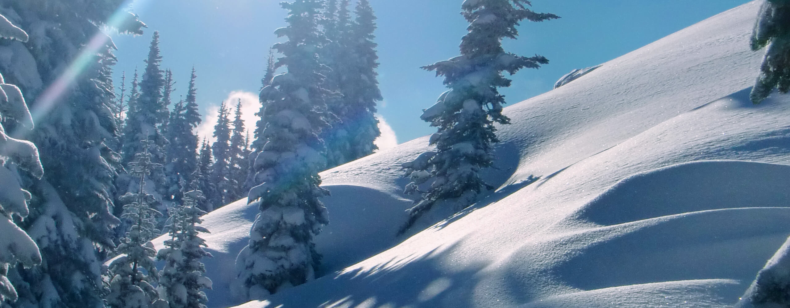 Most runs are tree runs from top to bottom. You’ll need your standard avalanche kit: transceiver, shovel, and probe.